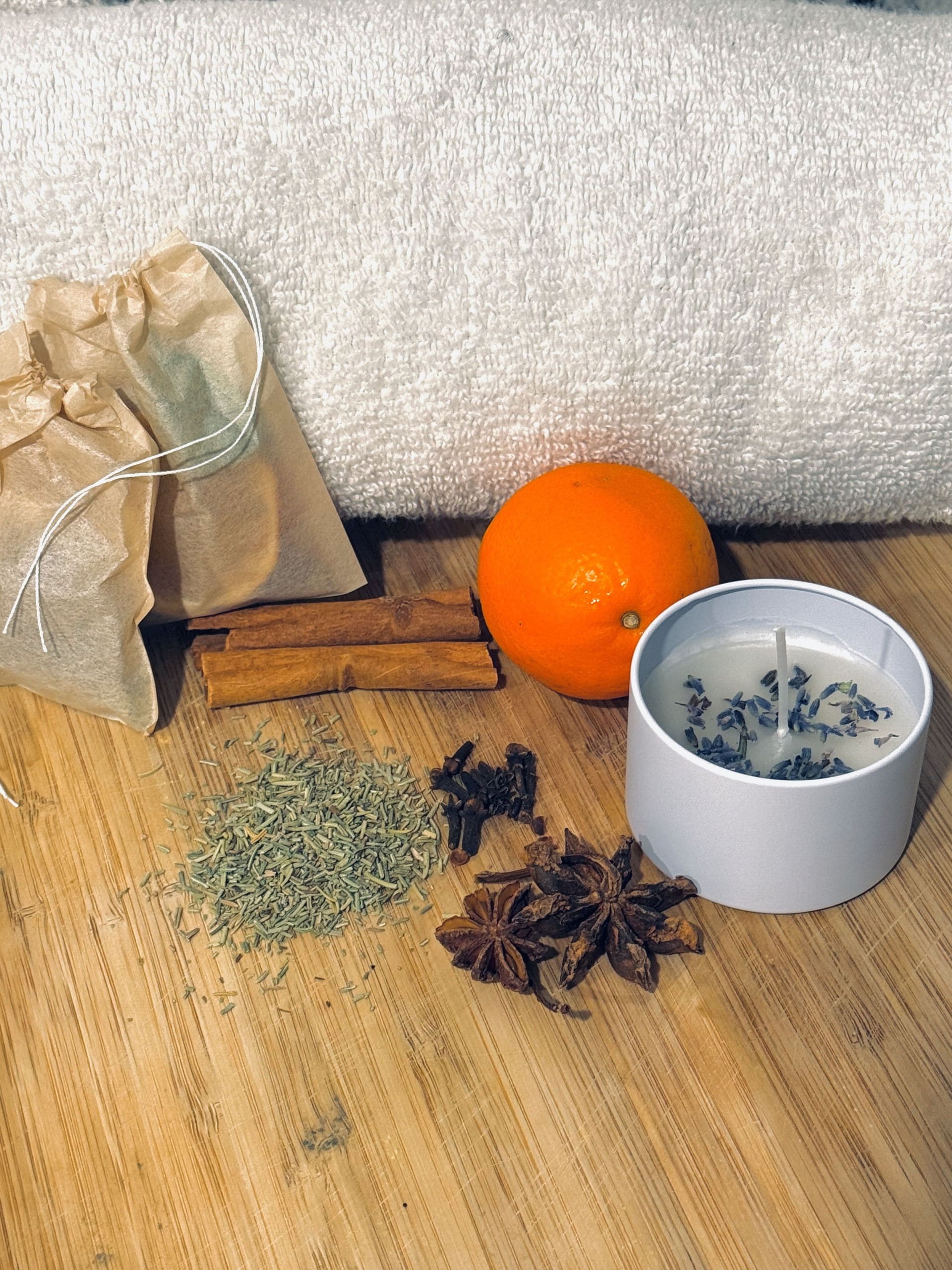 Cinnamon, rosemary, star anise, cloves, orange, basil